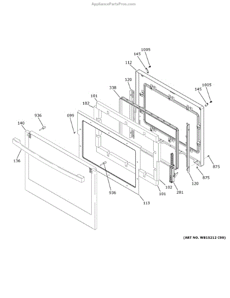 The Window Pack Assembly is an OEM part for GE ovens. This component includes the oven door window and its associated parts, providing visibility into the oven cavity during cooking. It helps retain heat within the oven while allowing users to monitor the cooking process without opening the door.