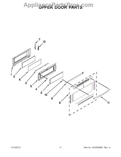 This is the upper door frame glass for the appliance door window. It restores a clear, secure viewing window in the upper section of the door so you can monitor cooking without opening the door. What it does: