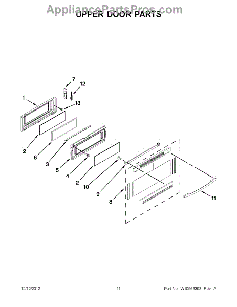 This is the upper door frame glass for the appliance door window. It restores a clear, secure viewing window in the upper section of the door so you can monitor cooking without opening the door. What it does: