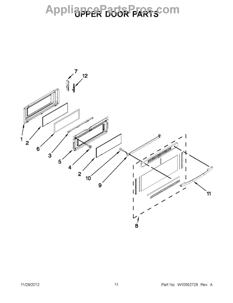 This is the upper door frame glass for the appliance door window. It restores a clear, secure viewing window in the upper section of the door so you can monitor cooking without opening the door. What it does: