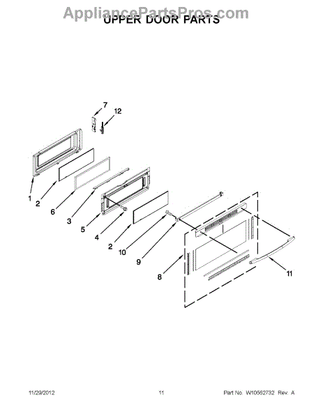 This is the upper door frame glass for the appliance door window. It restores a clear, secure viewing window in the upper section of the door so you can monitor cooking without opening the door. What it does: