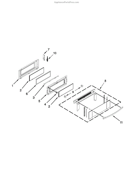 This is the upper door frame glass for the appliance door window. It restores a clear, secure viewing window in the upper section of the door so you can monitor cooking without opening the door. What it does: