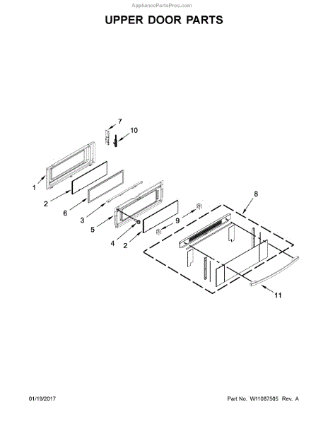 This is the upper door frame glass for the appliance door window. It restores a clear, secure viewing window in the upper section of the door so you can monitor cooking without opening the door. What it does: