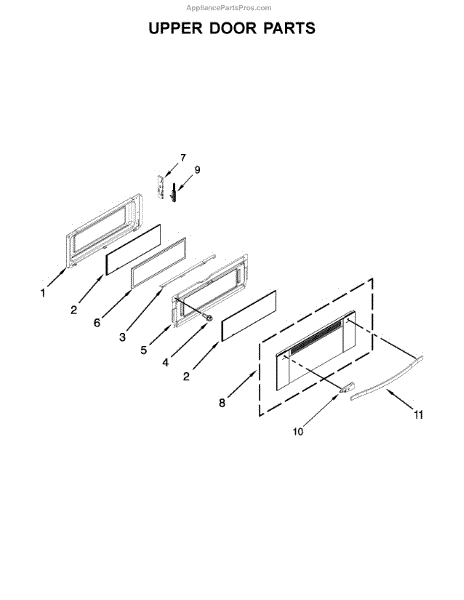 This is the upper door frame glass for the appliance door window. It restores a clear, secure viewing window in the upper section of the door so you can monitor cooking without opening the door. What it does: