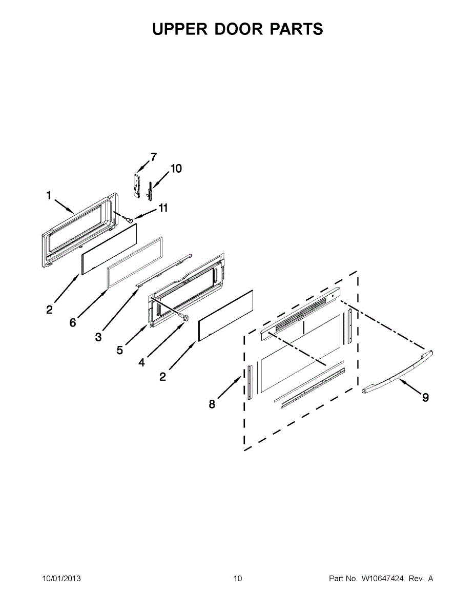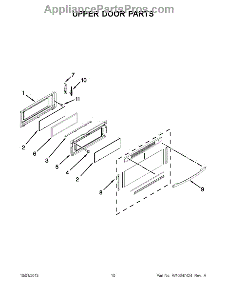 This is the upper door frame glass for the appliance door window. It restores a clear, secure viewing window in the upper section of the door so you can monitor cooking without opening the door. What it does: