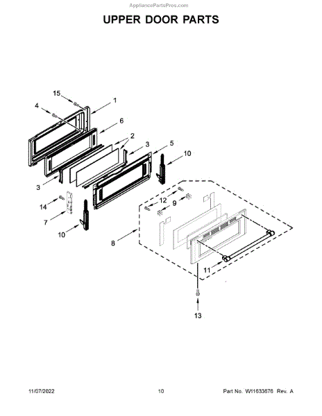 This is the upper door frame glass for the appliance door window. It restores a clear, secure viewing window in the upper section of the door so you can monitor cooking without opening the door. What it does: