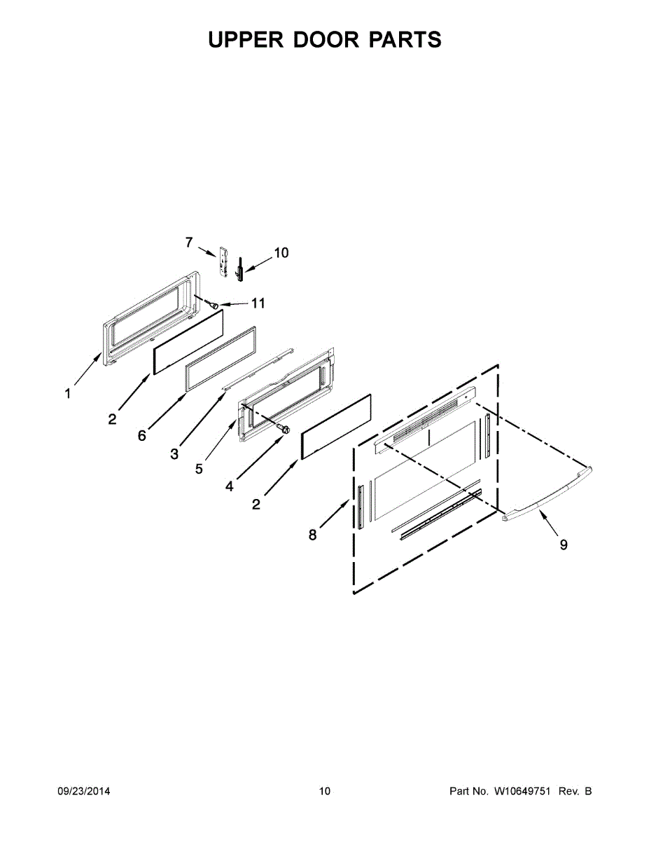 This is the upper door frame glass for the appliance door window. It restores a clear, secure viewing window in the upper section of the door so you can monitor cooking without opening the door. What it does: