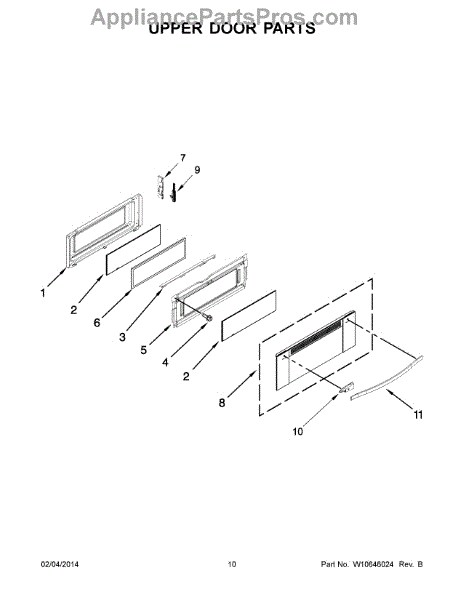 Upper door frame glass for oven door window. Replaces cracked, fogged, or broken upper glass section. Restores clear viewing of cooking progress.