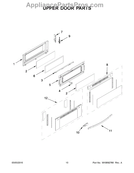 Parts for Whirlpool WGG755S0BE07: 06 - Upper Door Parts