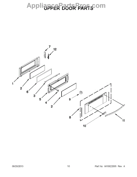 This is the upper door frame glass for the appliance door window. It restores a clear, secure viewing window in the upper section of the door so you can monitor cooking without opening the door. What it does: