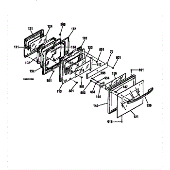 Parts for Kenmore 911.41369791 (91141369791, 911 41369791): Upper Door Section Parts
