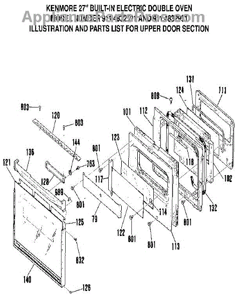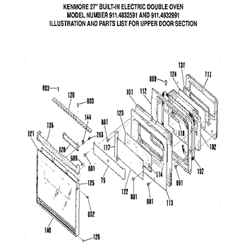 Parts for Kenmore 911.4832591 (9114832591, 911 4832591): Upper Door Section Parts