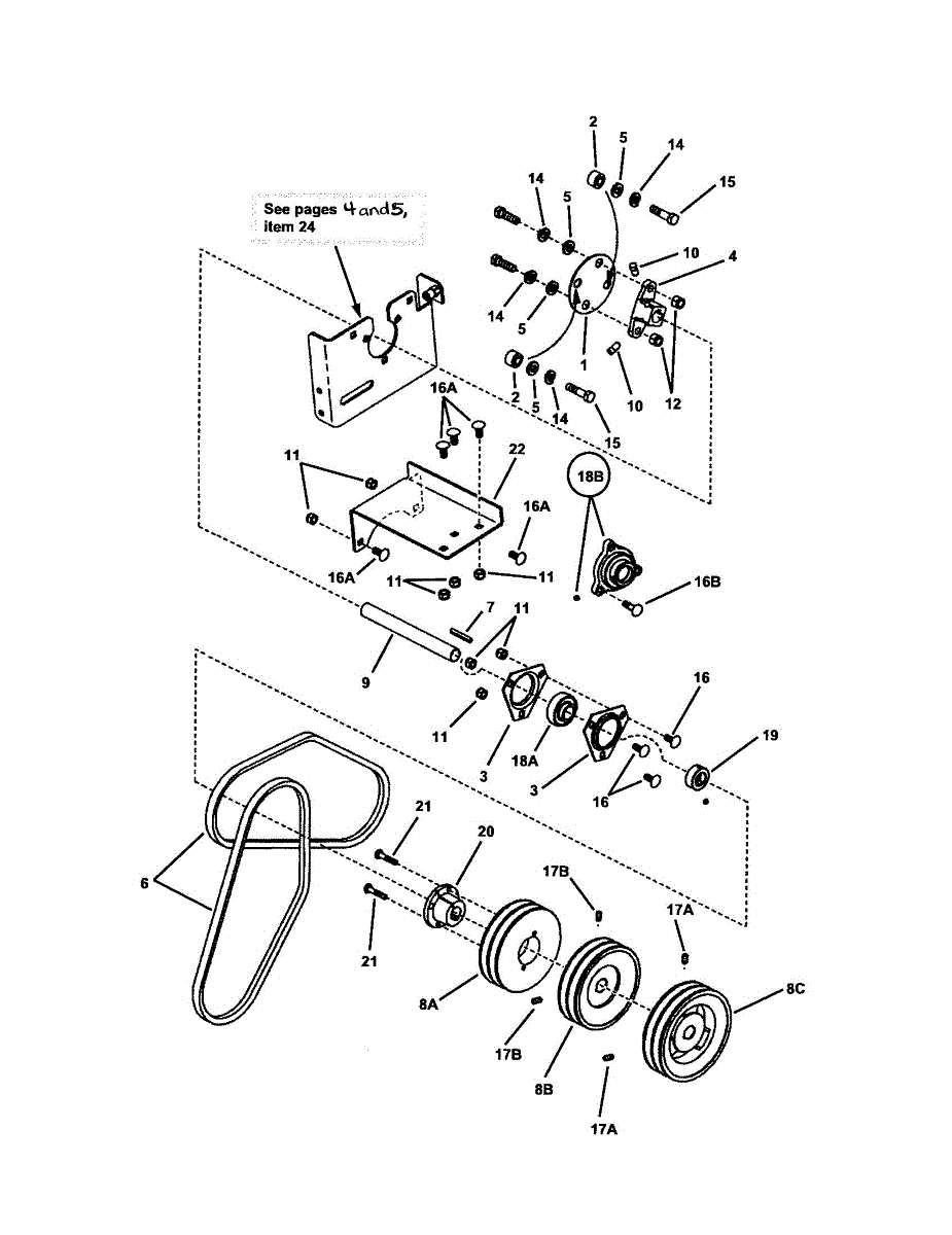 Parts for Snapper ZM2500KH: Upper Drive Shaft Assembly Parts