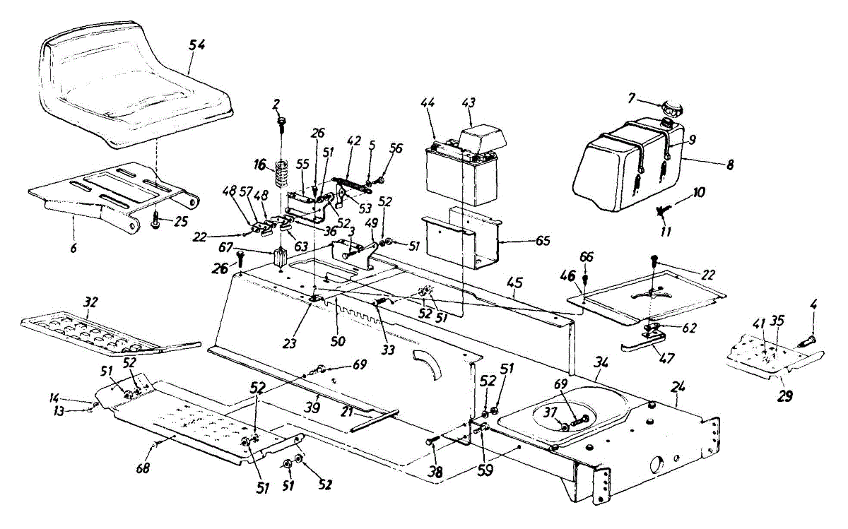 Seat support bracket for lawn tractors. Mounts under the seat to provide structural support. Replace if cracked, bent, or broken to restore proper seating.