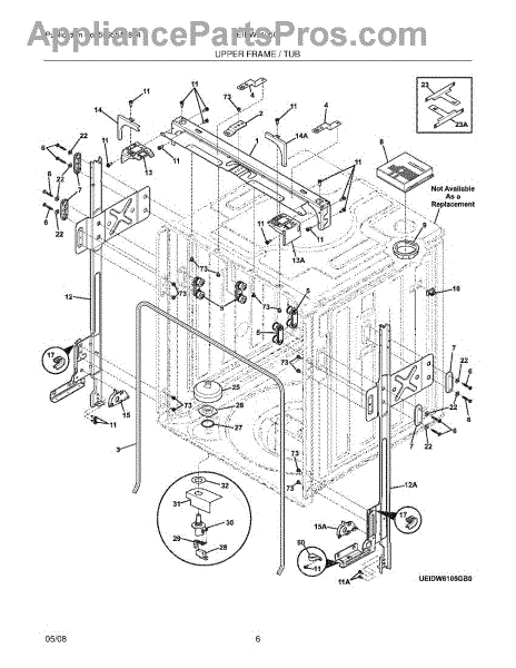 Parts for Electrolux EIDW6105GB1: 07 - Upper Frame / Tub Parts