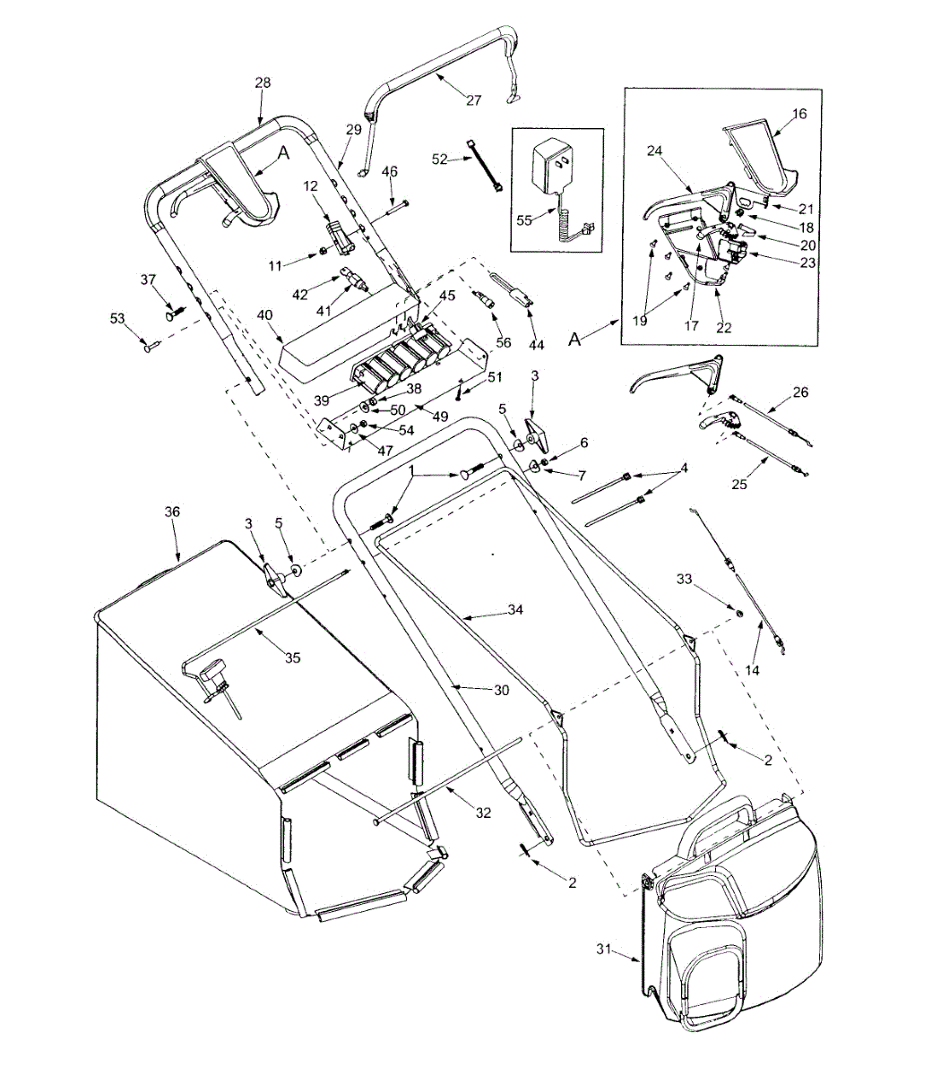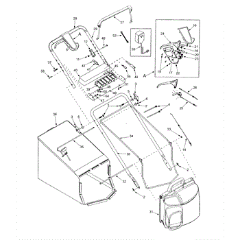Grass bag assembly for self-propelled walk-behind mowers. Collects grass clippings during mowing. Replace if torn, cracked, or missing parts.