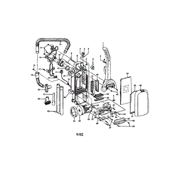 Parts for Hoover U5398-900: Upper Handle / Hose / Bag Housing Door Parts