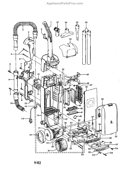 Parts for Hoover U5464-900: Upper Handle / Hose / Motor Parts