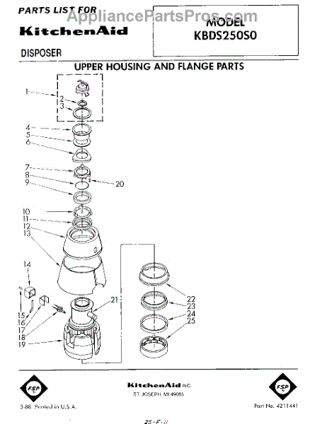 Parts for Kitchenaid KBDS250S0: 01 - Section Parts