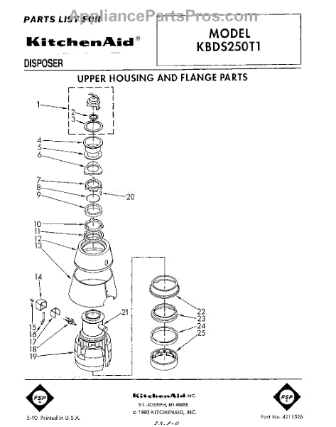Parts for Kitchenaid KBDS250T1: 01 - Section Parts