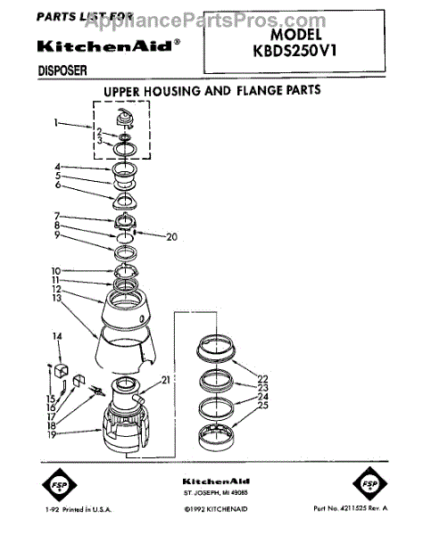 Parts for Kitchenaid KBDS250V1: 01 - Section Parts