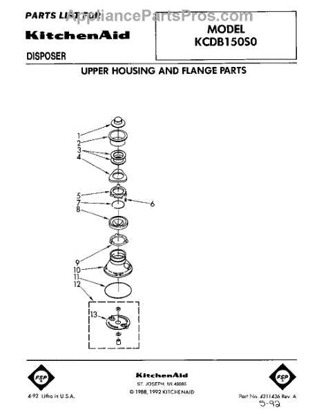 Parts for Kitchenaid KCDB150S0: 01 - Section Parts