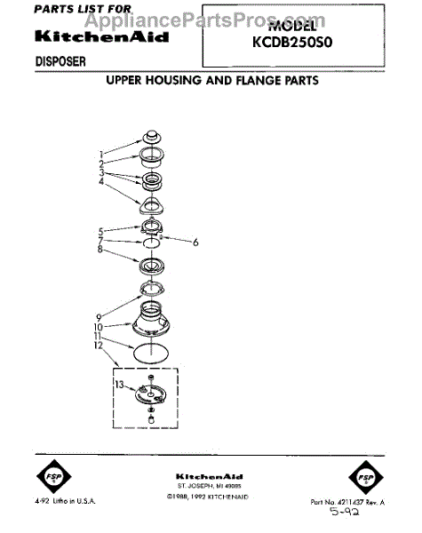 This gasket fits between the sink opening and the disposer's sink flange to create a watertight seal. Replacing a worn gasket helps stop drips at the top of the disposer and keeps the flange securely seated.
