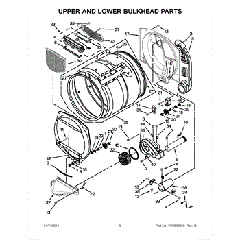 This front drum bulkhead is the stationary front panel that supports the dryer drum and seals the drum opening to maintain proper airflow and drum alignment for reliable drying performance. What it does: