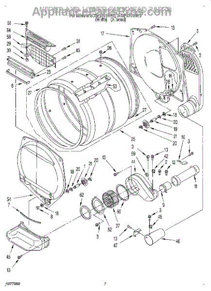 Replacement dryer drum that holds and tumbles laundry so air circulates evenly for efficient drying. Restores a smooth rotating drum surface to prevent fabric damage and improve drying performance. What it does: