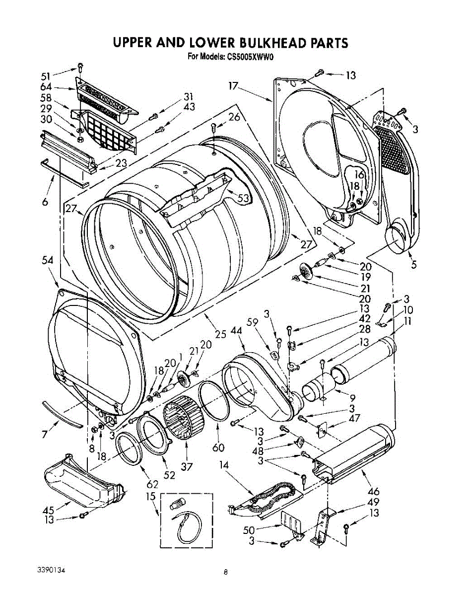 Replacement dryer drum front bulkhead panel. Installs at the front of the drum assembly. Needed when cracked, warped, or damaged from wear.