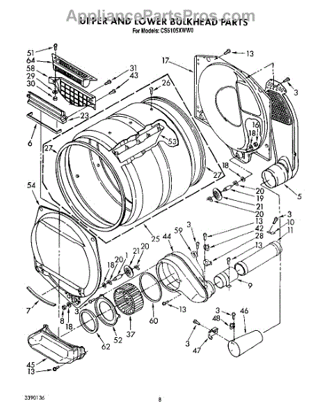 This bulkhead is the front interior panel that supports the drum and helps direct dryer airflow for efficient tumbling and exhaust. It restores proper drum alignment and airflow when the original panel is worn or damaged. What it does: