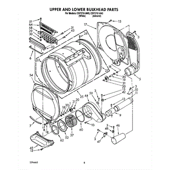 This front drum bulkhead is the stationary front panel that supports the dryer drum and seals the drum opening to maintain proper airflow and drum alignment for reliable drying performance. What it does: