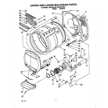 This front drum bulkhead is the stationary front panel that supports the dryer drum and seals the drum opening to maintain proper airflow and drum alignment for reliable drying performance. What it does: