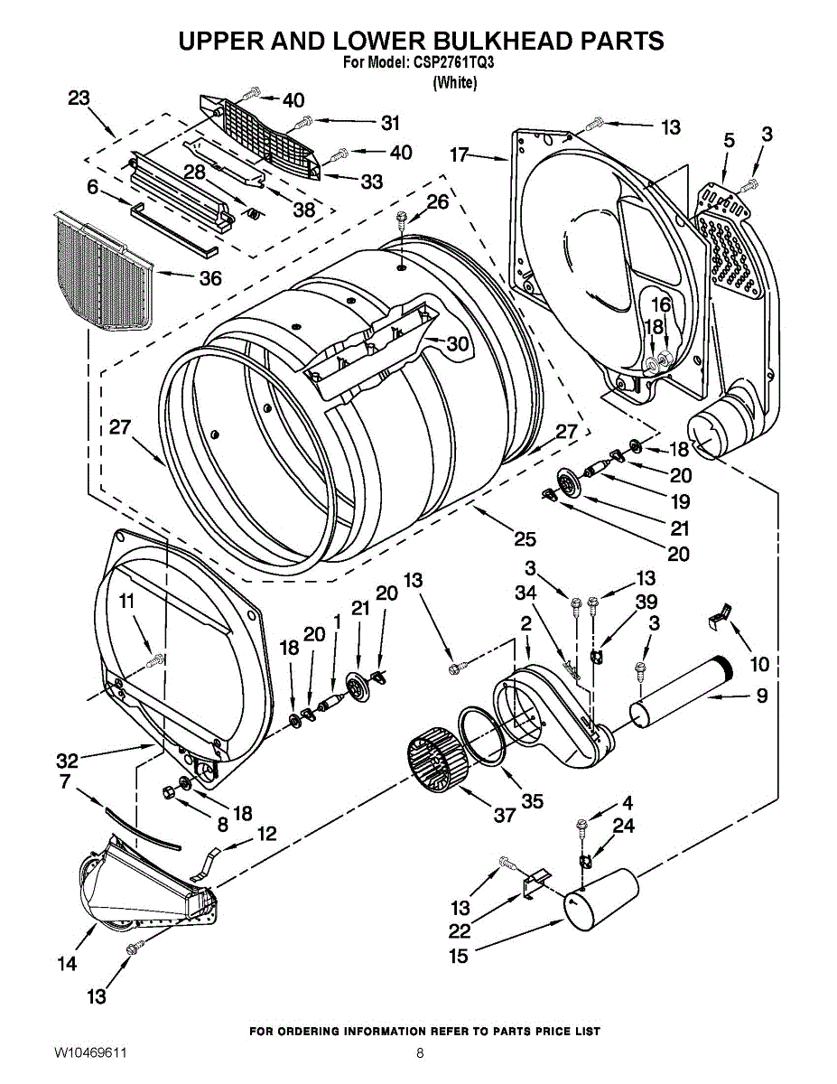 Replacement dryer housing cabinet that encloses and protects internal components. Restores structural integrity when original is cracked, damaged, or worn.