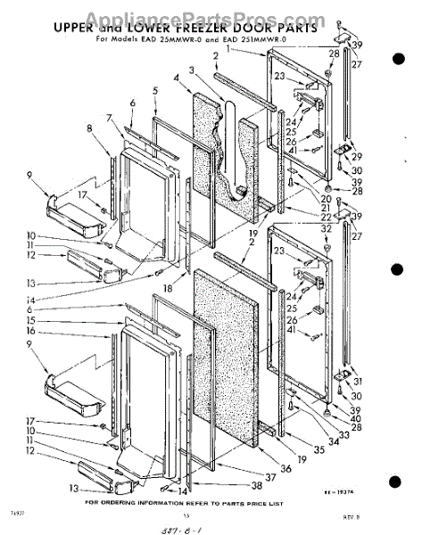 Parts for Whirlpool EAD25MMWR0: 15 - Upper And Lower Freezer Door Parts