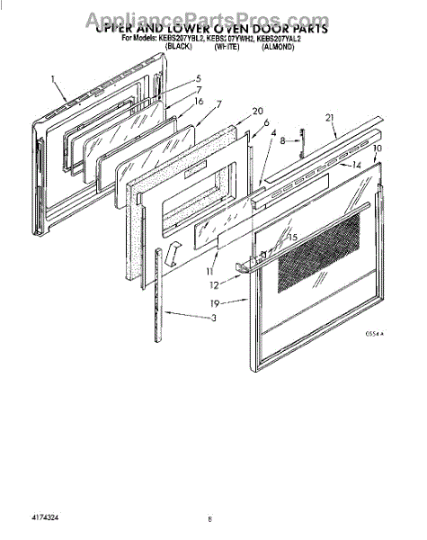 Parts for Kitchenaid KEBS207YAL2: 06 - Upper And Lower Oven Door Parts