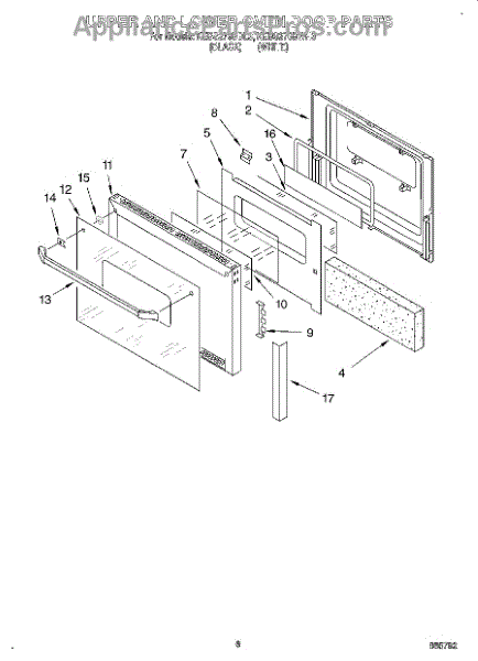 Parts for Kitchenaid KEBS276BWH3: 04 - Upper And Lower Oven Door Parts