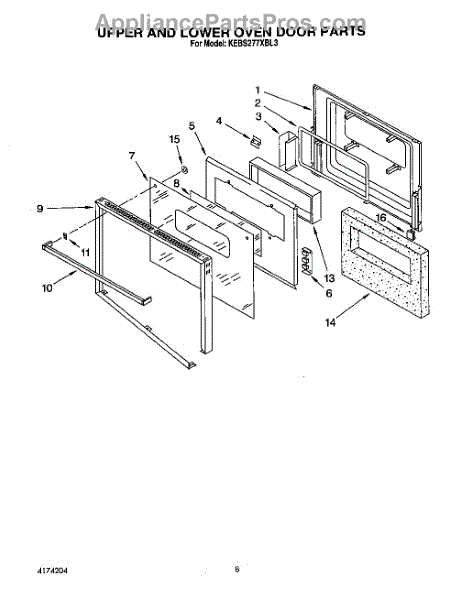 Parts for Kitchenaid KEBS277XWH3: 06 - Upper And Lower Oven Door Parts