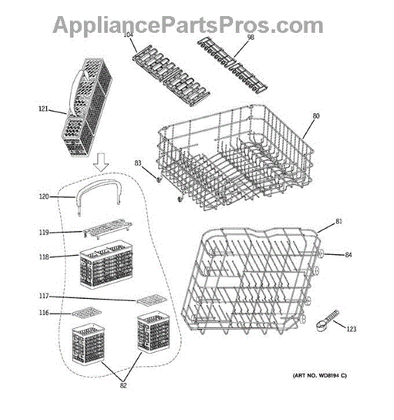 Parts for Ge GLDA690M00SS: Upper & Lower Rack Assembly Parts