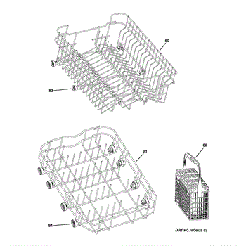 The Silverware Basket Assembly is an OEM part for GE dishwashers. This removable stainless steel tray holds and organizes silverware during wash cycles. Its perforated construction allows full saturation yet secure retention of flatware items.