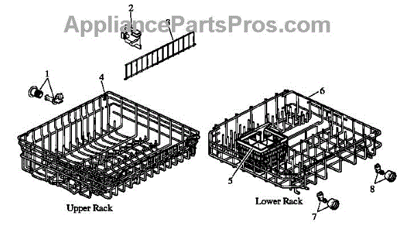 Parts for Magic Chef DU4000B/P1173801W: Upper / Lower Rack Parts