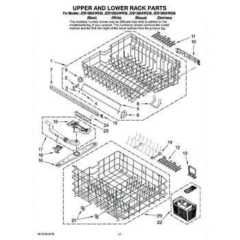 Note: New rack no longer includes removable tines or cup shelf. This part is a lower dishrack. The lower dishrack is the lower shelf of a dishwasher that holds plates, bowls, and utensils. To remove the old dishrack, simply pull it out and lift the wheels up from its track. Set it off the side, and lift the new dishrack. Slide it into its track and make sure it is locked in. If it is gliding in and out in a smooth way, it has been installed properly.This genuine replacement OEM part is sold individually and is compatible with Whirlpool brands include Whirlpool, Maytag, KitchenAid, Jenn-Air, Amana, Magic Chef, Admiral, Norge, Roper, and Sears/Kenmore brand appliances.