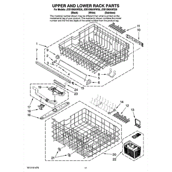 Note: New rack no longer includes removable tines or cup shelf. This part is a lower dishrack. The lower dishrack is the lower shelf of a dishwasher that holds plates, bowls, and utensils. To remove the old dishrack, simply pull it out and lift the wheels up from its track. Set it off the side, and lift the new dishrack. Slide it into its track and make sure it is locked in. If it is gliding in and out in a smooth way, it has been installed properly.This genuine replacement OEM part is sold individually and is compatible with Whirlpool brands include Whirlpool, Maytag, KitchenAid, Jenn-Air, Amana, Magic Chef, Admiral, Norge, Roper, and Sears/Kenmore brand appliances.