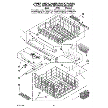 Note: New rack no longer includes removable tines or cup shelf. This part is a lower dishrack. The lower dishrack is the lower shelf of a dishwasher that holds plates, bowls, and utensils. To remove the old dishrack, simply pull it out and lift the wheels up from its track. Set it off the side, and lift the new dishrack. Slide it into its track and make sure it is locked in. If it is gliding in and out in a smooth way, it has been installed properly.This genuine replacement OEM part is sold individually and is compatible with Whirlpool brands include Whirlpool, Maytag, KitchenAid, Jenn-Air, Amana, Magic Chef, Admiral, Norge, Roper, and Sears/Kenmore brand appliances.
