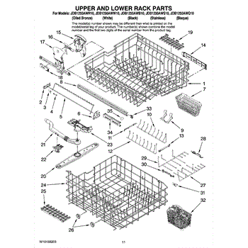 Note: New rack no longer includes removable tines or cup shelf. This part is a lower dishrack. The lower dishrack is the lower shelf of a dishwasher that holds plates, bowls, and utensils. To remove the old dishrack, simply pull it out and lift the wheels up from its track. Set it off the side, and lift the new dishrack. Slide it into its track and make sure it is locked in. If it is gliding in and out in a smooth way, it has been installed properly.This genuine replacement OEM part is sold individually and is compatible with Whirlpool brands include Whirlpool, Maytag, KitchenAid, Jenn-Air, Amana, Magic Chef, Admiral, Norge, Roper, and Sears/Kenmore brand appliances.