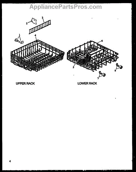 Parts for Modern Maid DDW650WW/P1173709W: Upper / Lower Rack Parts
