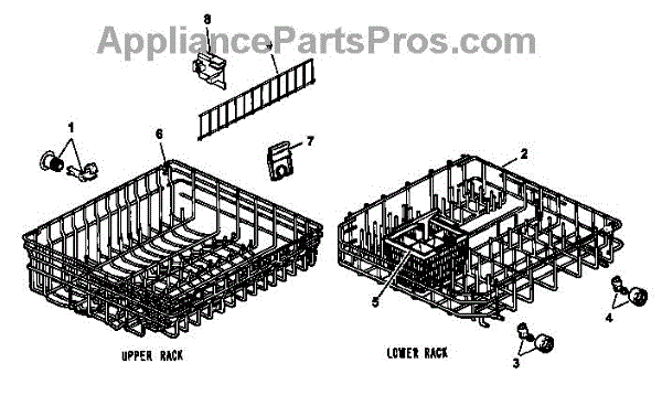 Parts for Modern Maid MDU500CB/P1188302W: Upper / Lower Racks Parts