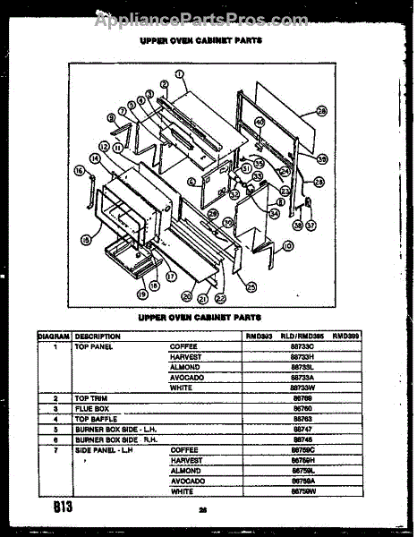 Upper Oven Cabinet Parts (Rmd393) (Rld395) (Rmd395) (Rmd399)