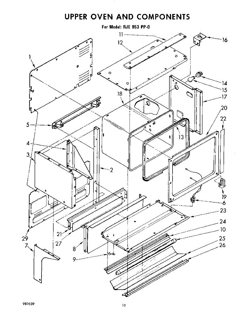Parts for Whirlpool RJE953PP0: 10 - Upper Oven And Components Parts