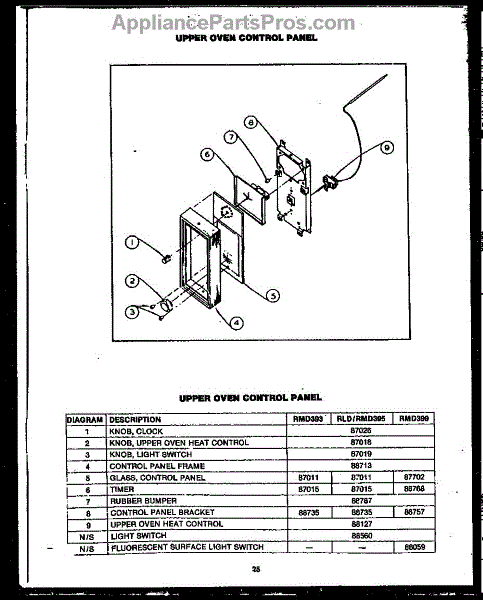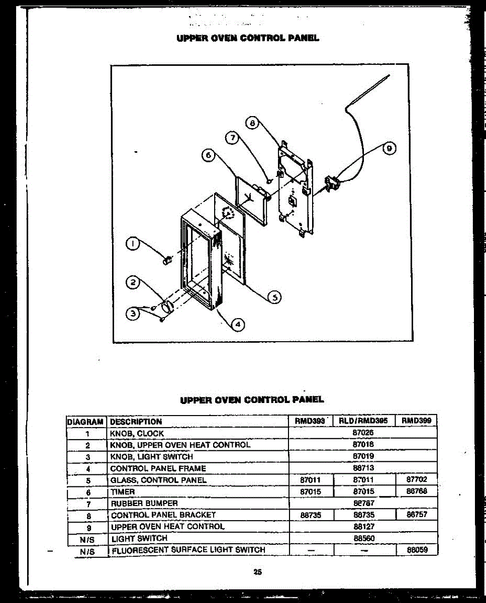 Parts for Caloric RMD369: Upper Oven Control Panel (Rmd393) (Rld395) (Rmd399) Parts